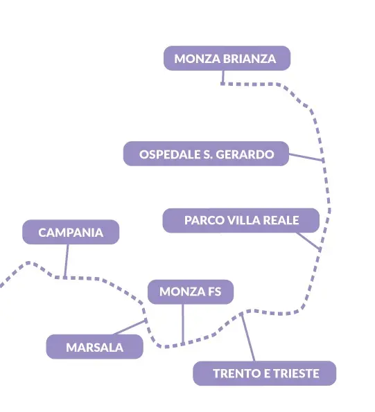 Il progetto della M5 rappresenta l’intervento più strutturale nel medio periodo, con l’estensione della metropolitana da Milano al territorio monzese. Il tracciato prevede 7 fermate distribuite su 7,5 chilometri, con questi nomi ufficiali: Campania, Marsala, Monza FS, Trento e Trieste, Parco Villa Reale e Ospedale San Gerardo, fino al capolinea nel polo istituzionale di via Grigna, Monza Brianza.
