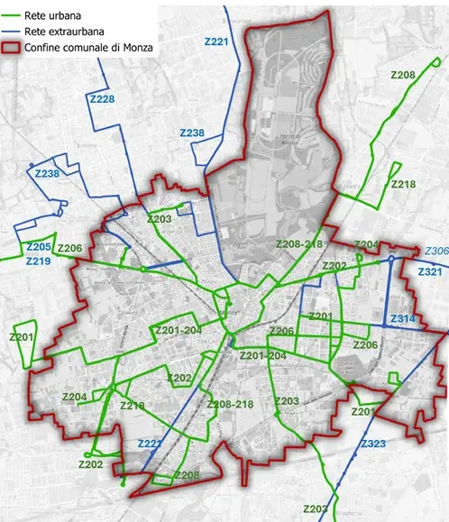 # Le sette linee dell’area urbana di Monza, inserite nel servizio extraurbano del bacino